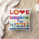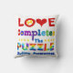 Inspirational Autism quote, Love Completes The Puzzle, with colourful Autism puzzle pieces and a beautiful butterfly to support Autistic children and their families.