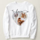 This is an original personalised sweatshirt featuring the word "LOVE" in black handwritten script typography and a heart-shaped 3 photo collage. Customise it with your pets' best pictures and names. It would also make a lovely christmas or birthday gift for an animal lover and dog or cat parent.