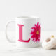 Modern flower child, spreading the best message. Includes a close up of a bright pink and white dahlia. A striking way to spread the message, and a great gift for nature lovers and gardeners.