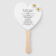 The fans are very pretty and easy to assemble. We utilized the original template and just inserted the names of our wedding party. After the product arrived we noted they read,”Made of Honor” rather than “Maid of Honor”. Upon re-checking the website we noticed the typo is in the original template and was not a mistake on our end. It is too late to return because our wedding is in just a few days but if we had time we would certainly request an exchange. See review above regarding typo.