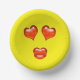 These paper party bowls feature a love emoji design.