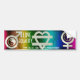 A textured rainbow background with the male and female signs, which include the ying-yang in the centre of the signs. In the centre of this design is a heart with the equal sign. In a white font is the text, Love Equality, and the store's website address.