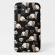 Hand-drawn ferrets, xoxo and hearts pattern iPhone 11 case, black background.
