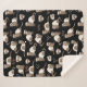Hand-drawn ferrets, xoxo and hearts pattern sherpa blanket, black background.