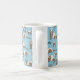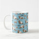 Hand-drawn ferrets, xoxo and hearts pattern coffee mug, blue background.