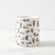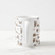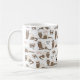 Hand-drawn ferrets, xoxo and hearts pattern coffee mug, white background.