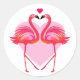 Love Flamingo Birds with Heart Frame Classic Round Sticker