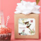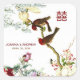 Two love birds looking at one another and having a dialogue on a blossoming magnolia tree where all the spring/summer flowers blooming in joy and vivid colours with a double happiness symbol design adorned this beautiful Chinese wedding custom stickers.