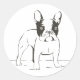 These cute canine stickers features a hand drawn black sketch of a black and white French Bulldog pup highlighted against a crisp white background.