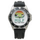 Has heft and feel of expensive stainless steel quartz wrist watches. Solid construction and good looks. Although it had a really top quality rubber strap, I substituted a stainless steel "Shark" style mesh strap, which I think is the most comfortable strap available. Perfect. True colors of original image. Clear, crisp image precisely aligned and spaced.