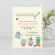 A delightful invitation for a lawn and garden shower. The cream background front features a hand rake, watering can, flower pots, garden boot and glove and a little ladybug which can be dragged to any location, made larger or smaller (+-) or eliminated. The back has an overall pattern of garden tools and flowers. The card is easy to customise with your wording, font, font colour, paper shape options and choice of six paper types.