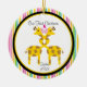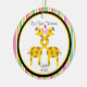 Perfect for your first Christmas together or your tenth. This ornament has an adorable loving couple of giraffes puckering up to each other. It's in a white centre of a circle with an outlined yellow one, then black with a multi striped outer border of ornament. Give as a gift or buy for yourself. This will be a keep sake for many, many years to come. ©JW Illustrations