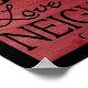 Scripture from Galatians 5:14. When we live by the words of Love God, Love Your Neighbour, you fulfil all that God commands of us. Black words on a red wooden plank looking background all within a black border. Original design by Christie Black of Creations from the Heart.
