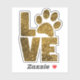 Show your love for animals with this custom cut sticker featuring glittery gold letters and a paw print spelling out the word "LOVE". Great for water bottles, laptops, cars or anywhere you want to show your style. Many other designs are available here in my store on Zazzle. Be sure to stop in and check them out and be sure to follow me for new product updates! Thank you for your interest in SapphireDesigns!
