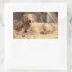 Golden Retriever Love! These fun stickers feature an image of a happy Golden Retriever puppy resting in hay.