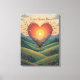 Experience the beauty of love and nature with this stunning heart-shaped sunset landscape. Featuring a golden sun glowing over lush green fields, this artwork symbolises growth, warmth, and the deep roots of love. The soft, dreamy colour palette makes it an eye-catching piece for any room, bringing a sense of peace and inspiration. Ideal for couples, nature enthusiasts, and anyone looking for a heartfelt gift, this print works beautifully as wall art, or home décor. Whether celebrating an anniversary, wedding, or simply spreading positivity, this design embodies love’s power to grow and flourish.