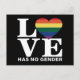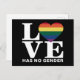 Love Has No Gender LGBTQ Rainbow Pride Month Postcard