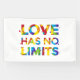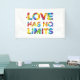 This design features the phrase "Love Has No Limits" formed in colourful rainbow colours.
