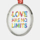 This design features the phrase "Love Has No Limits" formed in colourful rainbow colours.