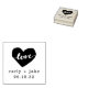 Add hand stamped charm to your envelopes, favours and more with our romantic wedding stamp featuring your names and wedding date displayed beneath a heart illustration with "love" inscribed inside in modern script lettering. Personalise with your names and wedding date using the fields provided, and choose an optional ink pad in a colour to coordinate with your wedding details.