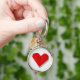 Minimalist style keychain with cute red heart origami illustration. Perfect for origami fans.