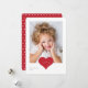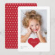 A simple, minimal photo valentine's day card with modern red heart with love inside on a clean and simple white background. The accompanying pattern backer has a repeating heart pattern in red and white. Valentine's day cards are the perfect way to send love and make up for missing the holiday rush of christmas and new years cards. It's sometimes hard to get it all done and things have usually slowed down by Valentine's day and you can plan sending out cards a little easier. It's unexpected when they show up in the mail making them extra special. Plus they don't have all those holiday cards to compete with so they really stand out.