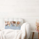 Modern and stylish custom lumbar throw pillow design features a photo collage of three (3) favourite photos with a simple and minimal white "Love" typography design that includes flourish and heart details. The light chambray blue and white colours can be modified.