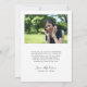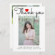 Simple and modern graduation thank you template card to send out to those who congratulated you, attended your graduation party, gave you gifts etc. It says "thank you" on the top in a modern script font with a cute heart in-between. You can add a second picture on the back and the message is editable.