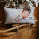 Delicate black love script with a heart flourish overlays your favourite photo on this personalised lumbar pillow. The minimalist design lets any photo shine — from newborn portraits and pet snapshots to couple selfies and family memories. Upload your own photo to create a one-of-a-kind keepsake or meaningful gift.