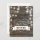 Love heart String of lights Save The Date, this design have a rustic wooden background with string of lights and a white heart and Save the Date banner