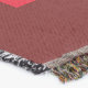 A quality printed throw has its advantages. This is a much finer weave throw than its loopier cousins, and though lighter, it is worth the investment for custom room accessorizing. The back is much prettier than the typical brown, and the fringe on the long sides very vivid, the selvage nicely done. Before photographing, I washed the throw in cold water, delicate, with a thicker woven throw the same size. On tumble dry low, this throw was dry in half the time as the other. This is a very practical quality if you use throws for furniture covers or to wrap up in frequently. The sleekness of the fabric makes it a great layer for accenting or protecting without the feeling of sitting on too much stuff. Perfect for napping or when you feel a light chill coming on. The color printing is beautiful and on this fabric, matched the design and color of my Photoshop image. This is an advantage for blending room fabrics and colors. The fringe on the short sides prints the colors from the design image and therefore varies from the side fringe. I streaked a white fractal line through the plaid pattern to give the illusion of weaving. This printed as crisp as an illusory thread, and put some white in the short side fringe, showing another advantage of print vs loomed- for artistic purposes, line lines, detail, and color integrity can be planned and preserved. My loomed throws have color limitations and more of a needlepoint texture. Print throws reproduce an exact image. The throw felt a little stiff straight out of the package, but this went away in the first delicate wash. Of course I searched the wash water for ink or bleeding and there was none.