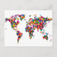 Map of the World made from overlapping colourful semi-transparent hearts, on a white background