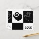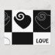 graphic illustration with hearts in black and white
