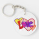 The word "Love" painted in red, pink, & purple against yellow, pink, and orange hearts. The hearts intersect and mix colours on overlap like the many aspects of love in our loves. This painting also comes in a glitter version.