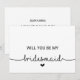 This love hearts will you be my bridesmaid card is perfect for a rustic wedding. The romantic minimalist design features a sweet and simple heart calligraphy font. Customise the card with the name of the bride and the bridesmaid. Personalise the back of the card with a personalised message.
