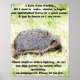 Love Hedgehogs, Be A Wild Gardener! This poster features a photo of our wild hedgehog with text about how to care for them in the wild. Our garden has recently become home to one of these gorgeous creatures and we are so happy! They are becoming very rare and they need our help now! The beautiful, inquisitive and just plain cute hedgehog is in rapid decline. Every one of us can help stop its extinction by doing a little to help. Make a patch in the garden "wild", let the grass grow a bit longer, make a small -or large - undisturbed woodpile, gather leaves and pile them up or just leave the leaves where they fall in borders. Provide a dish of clean water. Make accessible holes in fences so Hedgehogs can roam. Check any bonfires for hogs before you light them and check your garden before doing any deadly strimming. You may be rewarded with a wild Hedgehog or two!