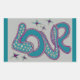 Handwritten bold letters, hearts and stars. On some products you can play with background colour.