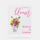 Love is in bloom! Vibrant floral wedding collection featuring a bouquet in a marble vase surrounded by butterflies, and accompanied by fuchsia script typography.