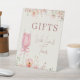 Love in Bloom themed gifts table pedestal sign designed for bridal shower celebrations. Created to guide guests with a romantic, floral look that coordinates beautifully with elegant shower decor. Ideal for bridal showers, engagement parties, and wedding shower gift tables. Editable text. Clean print-ready layout.