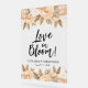 Elegant peach, pale terracotta, rustic orange and grey with brown leaves, are featured on this clear acrylic sign featuring Love in Bloom and your details. CHANGE THE SIZE to fit your event and order with or without a wood stand. MATCHING items in our collection.