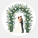 Includes 20 small stickers on one sheet. Romantic illustration of a couple sharing a kiss under a floral arch, perfect for wedding decor or to share with loved ones.