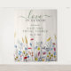 This sweet and simple bridal shower backdrop is perfect for any nature loving bride-to-be. The design features the title "love in bloom" in a charming script and serif font and the bottom of the signage is adorned with a beautiful field of hand painted watercolor wildflowers, adding a touch of color and whimsy. The template wording is fully customizable so you can easily add your own details, making it a truly unique keepsake for the special day and is sure to impress your guests and set the tone for a beautiful and memorable bridal shower.