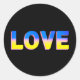 LOVE in Blue & Yellow on Black Stand with Ukraine Classic Round Sticker