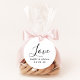 Stamper features "Love" in hand lettered script writing with a simple and modern custom monogram of the bride & groom's names and wedding date.