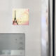 Eiffel Tower against a yellow, tan and pink background with floating hearts and "paris" in gold font. Easily add your own text to this design to customise it. Perfect for the Paris, France travellers, wedding or other special occasion.