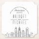 A unique deco skyline-themed set of drink coasters tailored specifically to your future wedding, rehearsal dinner, or engagement party in the beautiful city of Philadelphia, Pennsylvania. They feature a greeting across the top, followed by the city name and the date of your wedding or event. Underneath this are the names of the wedding couple in a unique and complimentary open-style font.