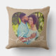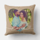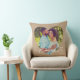 Modern and stylish custom throw pillow design features a favourite photo in a big heart shape with a minimal white "Love" typography overlay design that includes flourish and heart details. The latte tan brown background colour can be modified. A unique gift idea for a newlywed couple or for your loved one on Valentine's Day!