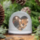 Modern and stylish custom snow globe design features a favourite photo in a big heart shape with a minimal white "Love" typography overlay design that includes flourish and heart details. The neutral silver grey coloured background can be modified. A unique gift idea for couples, newlyweds, or for your loved one on Valentine's Day!