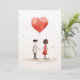 A minimalistic and heartwarming illustration of a couple holding hands, connected by a red, heart-shaped balloon that floats above them. The simple design, watercolor texture, and soft splashes of colour on a white background give a gentle, dreamlike feel to the artwork, symbolising love and togetherness in a pure, innocent way.