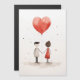 A minimalistic and heartwarming illustration of a couple holding hands, connected by a red, heart-shaped balloon that floats above them. The simple design, watercolor texture, and soft splashes of colour on a white background give a gentle, dreamlike feel to the artwork, symbolising love and togetherness in a pure, innocent way.